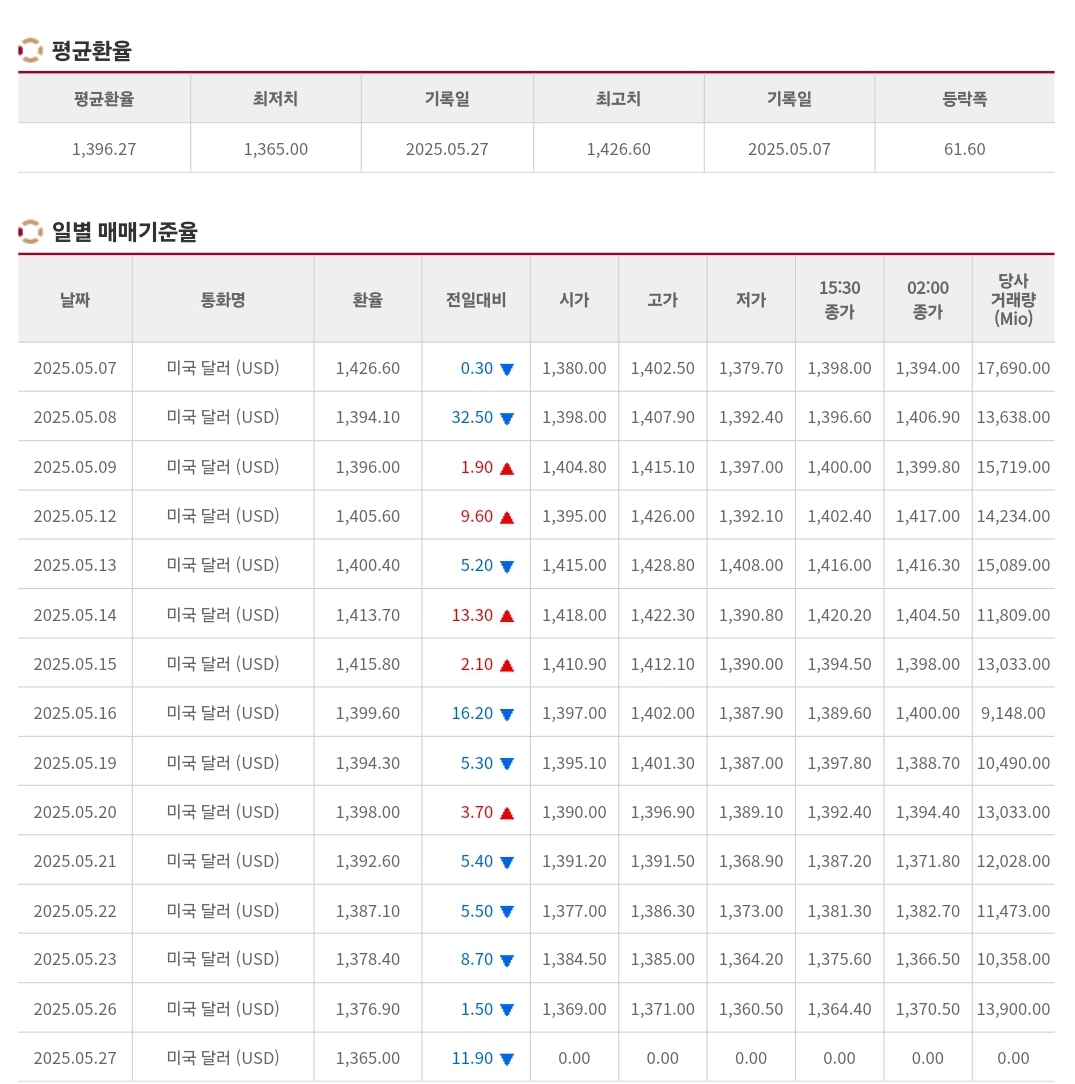2025년 5월 27일 환율은 다시 상승세로 전환되며 시장 참여자들의 관심을 끌었습니다. 1360원대에서 안정되는 듯 보였던 원·달러 환율이 장중 1370원을 넘어서며 긴장감이 높아졌습니다.