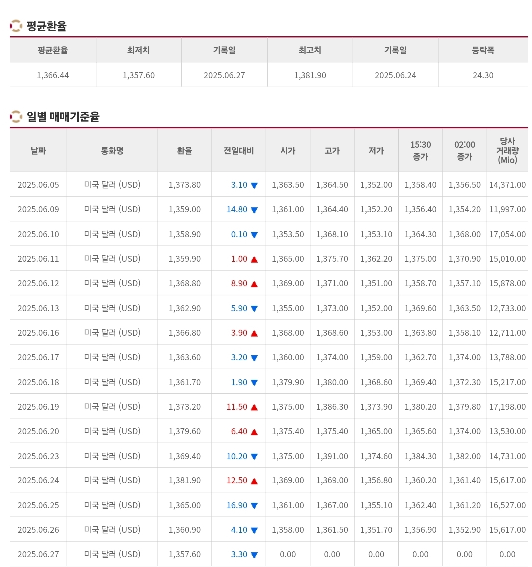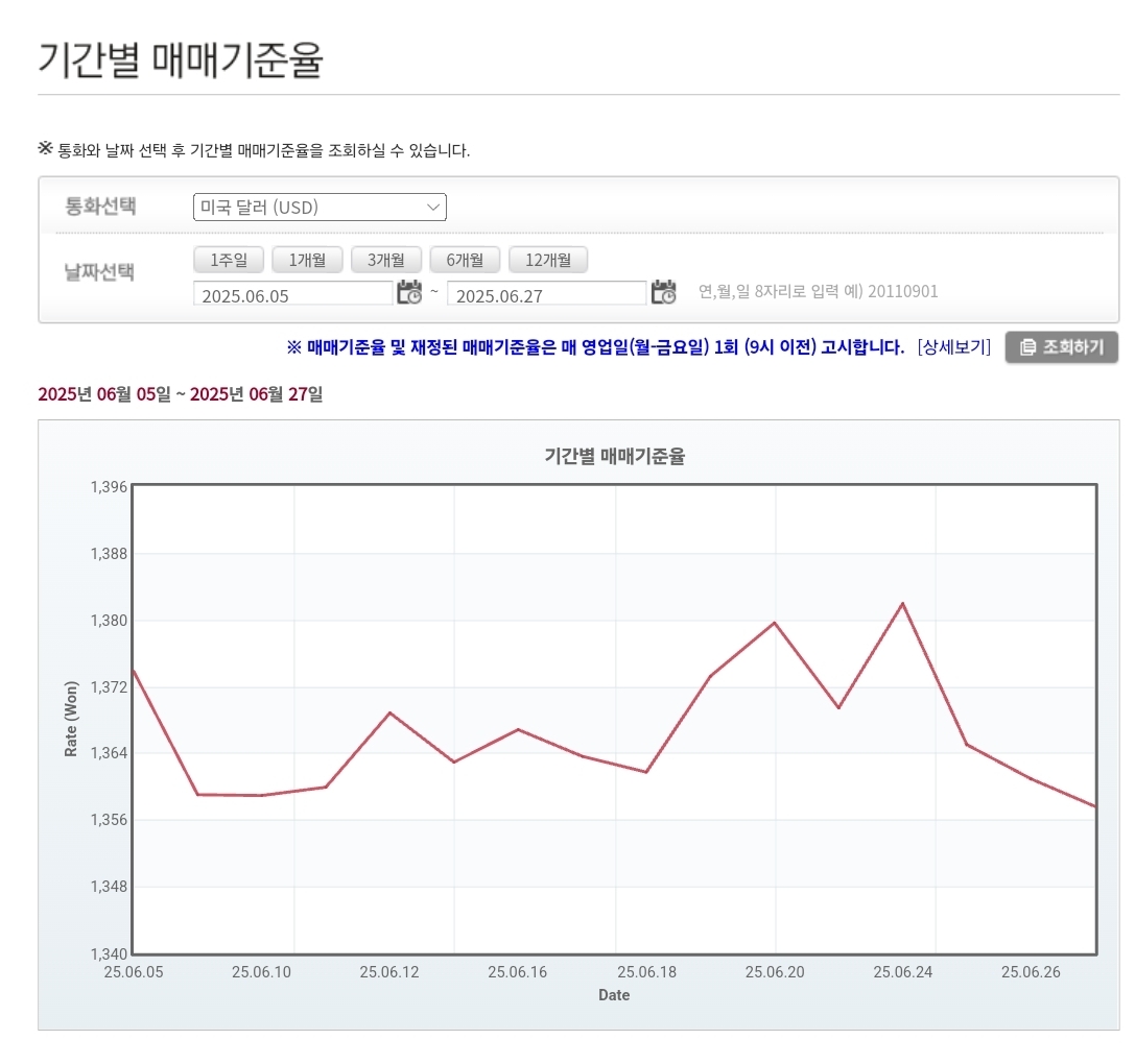 2025년 6월 27일 환율 및 매매기준율 본문