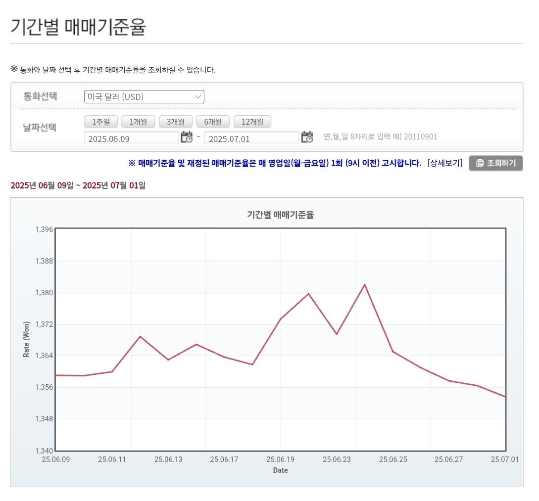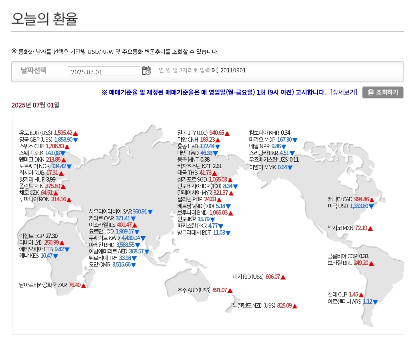 | 2025년 7월 3일 환율 및 매매기준율 (1) | 2025.07.03 |
