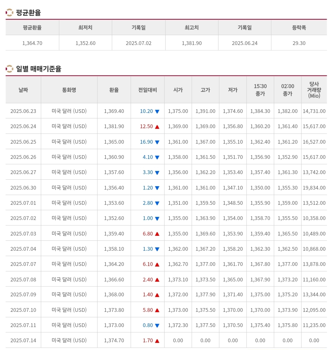 2025년 7월 14일 환율 분석: 15거래일 만에 1380원 돌파, 다시 커지는 트럼프 관세 리스크