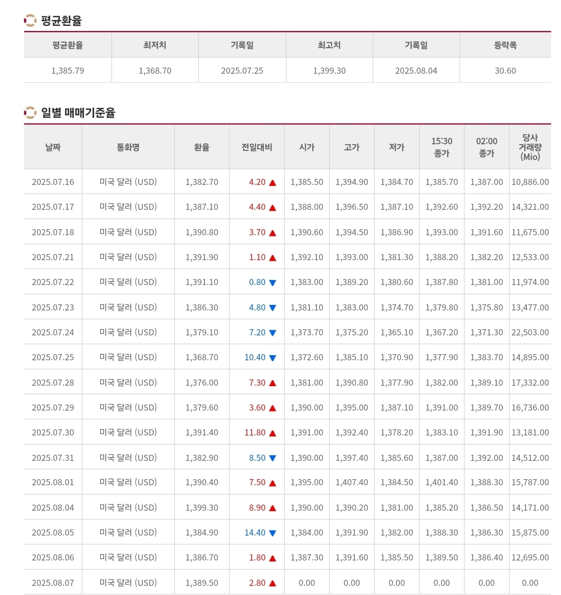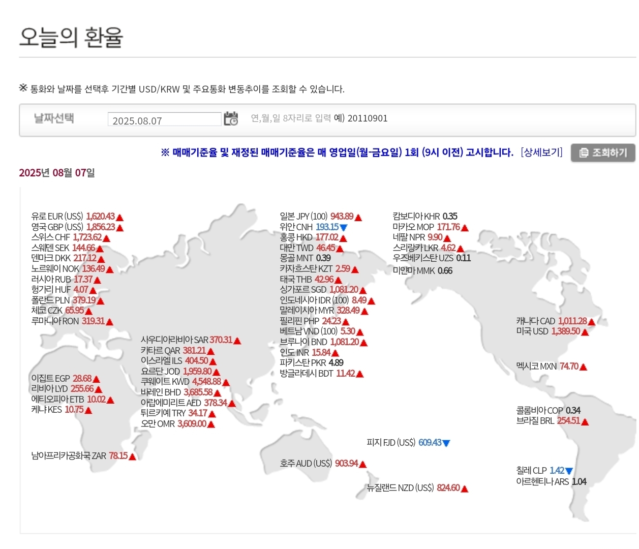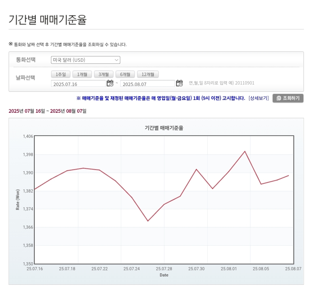 2025년 8월 7일 환율 및 매매기준율 본문