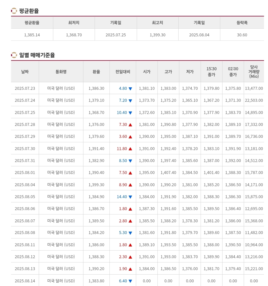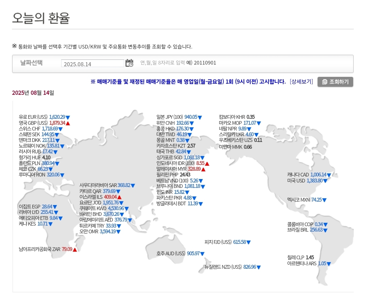 2025년 8월 14일 환율 및 매매기준율 본문