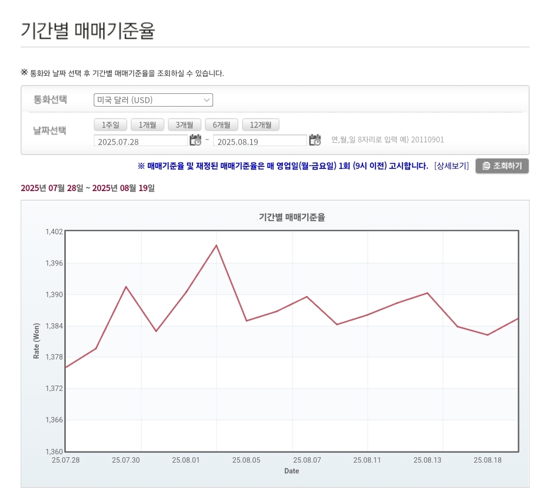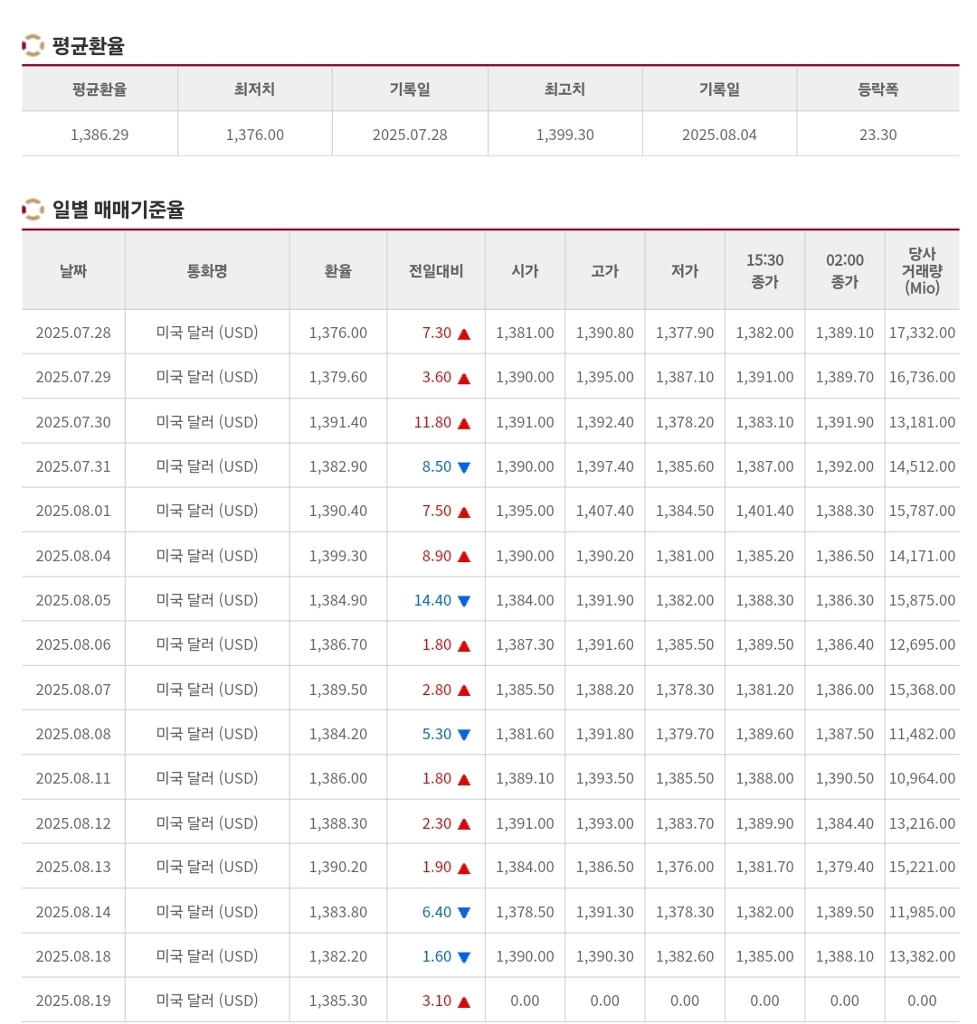 📊 2025년 8월 19일 환율 및 매매기준율 분석: 원·달러 환율 1,390원 돌파, 그 배경과 전망