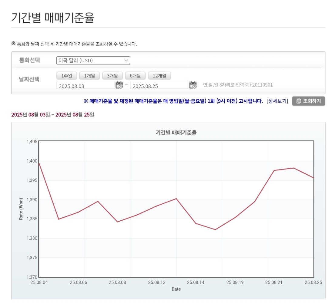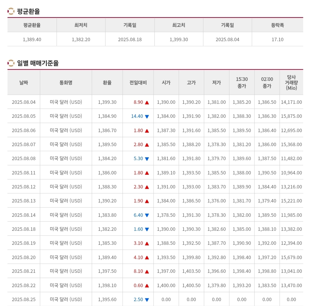 📉 2025년 8월 25일 환율 및 매매기준율: 미 금리 인하 기대에 원·달러 환율 1,384.7원 하락 마감
