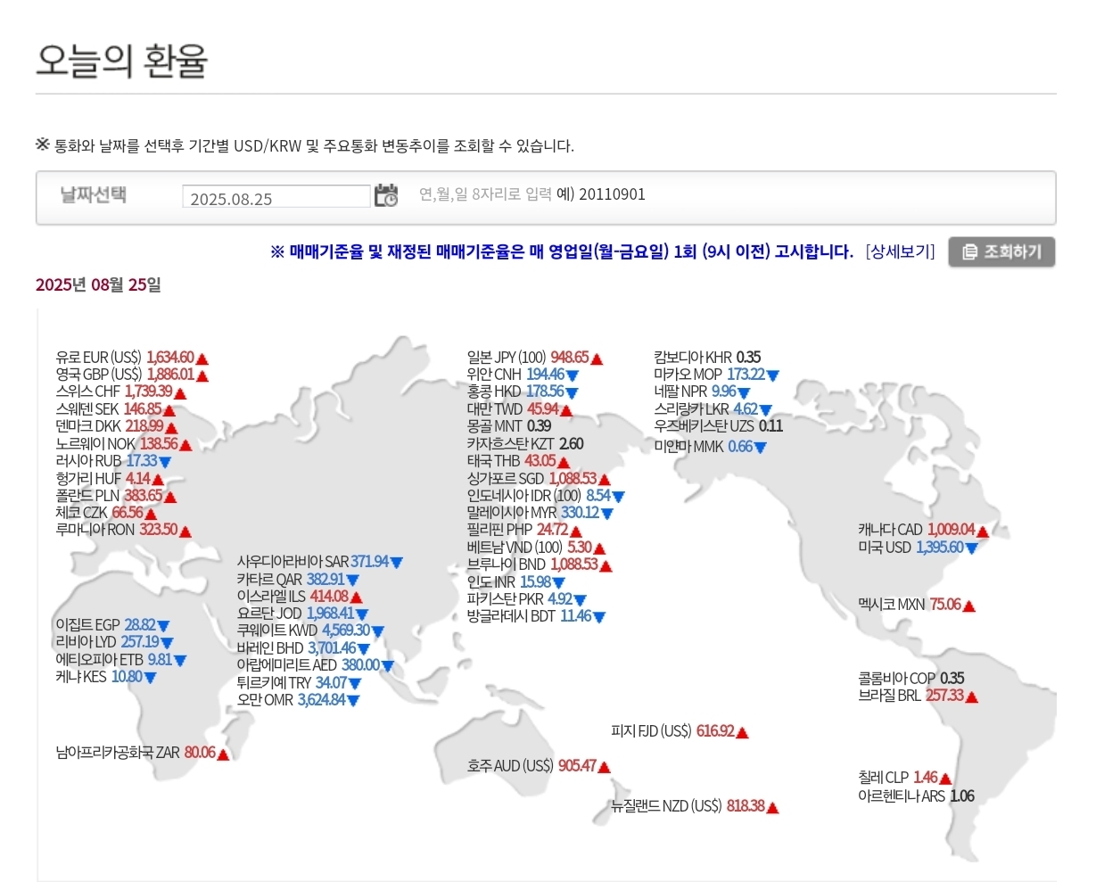| 2025년 8월 21일 환율 및 매매기준율 (1) | 2025.08.21 |