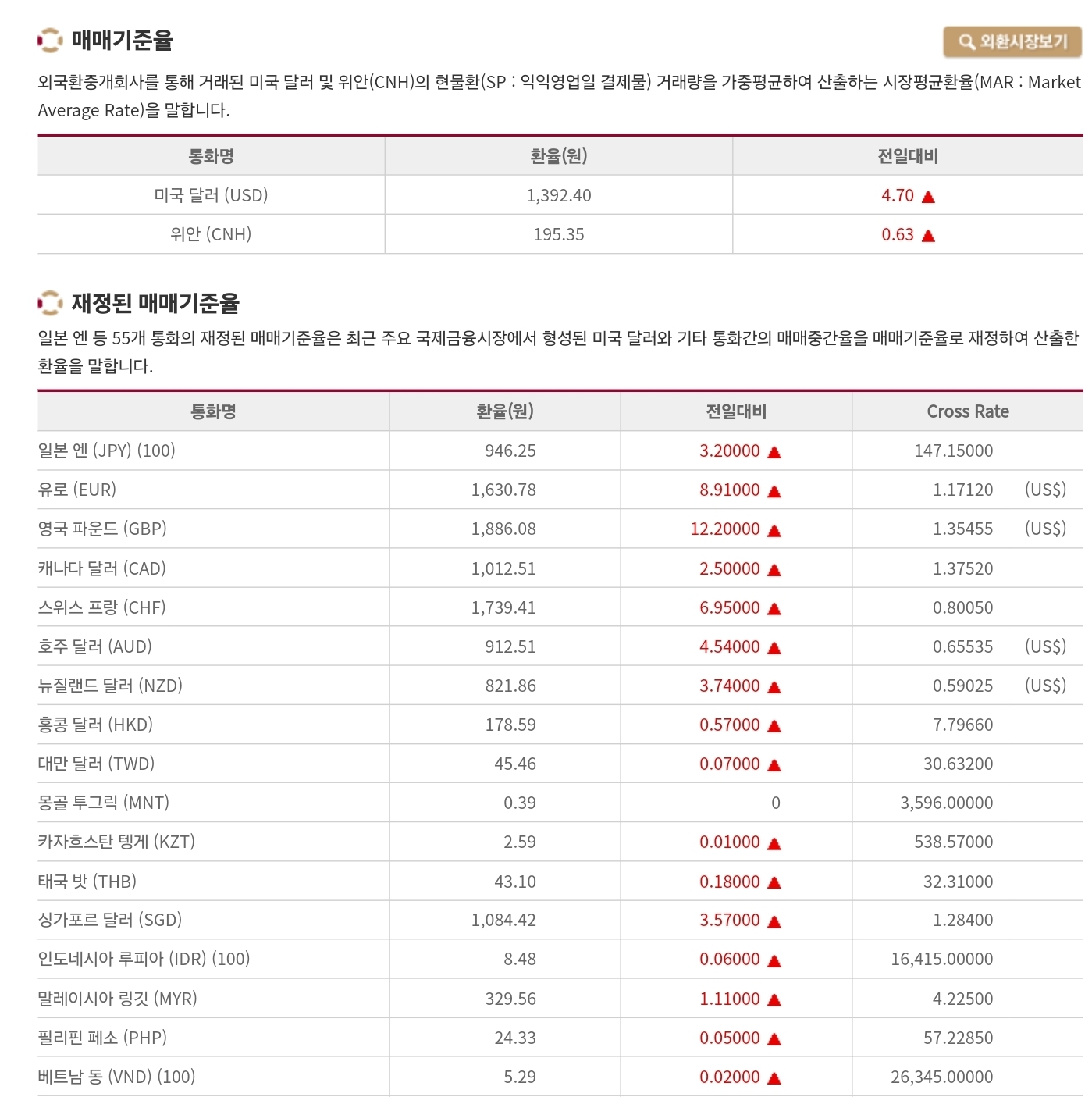• 개장가: 1,393.0원 (전일 대비 -0.7원)