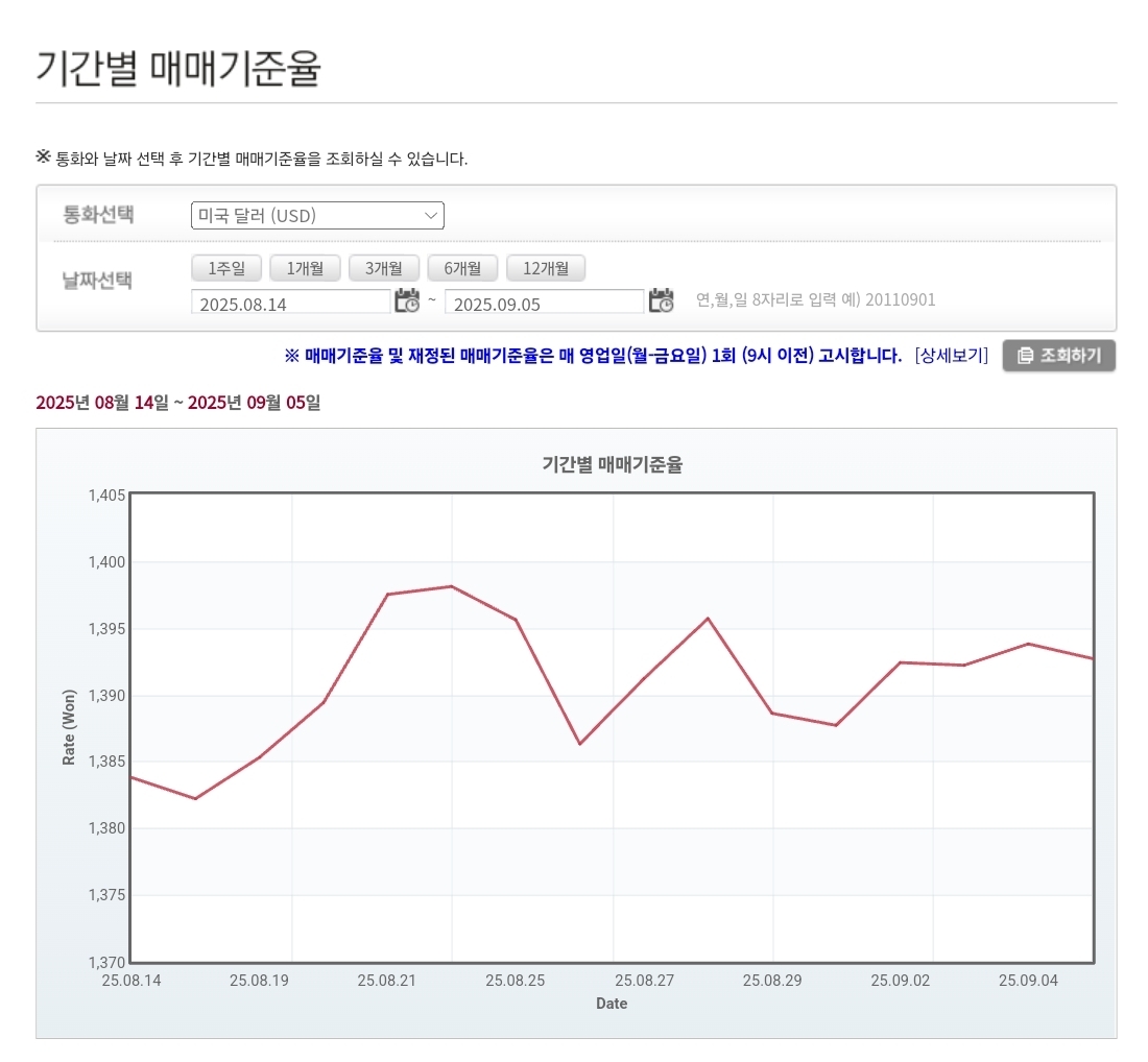 2025년 9월 5일 환율과 매매기준율: 미국 고용지표 발표 앞두고 원화 강세