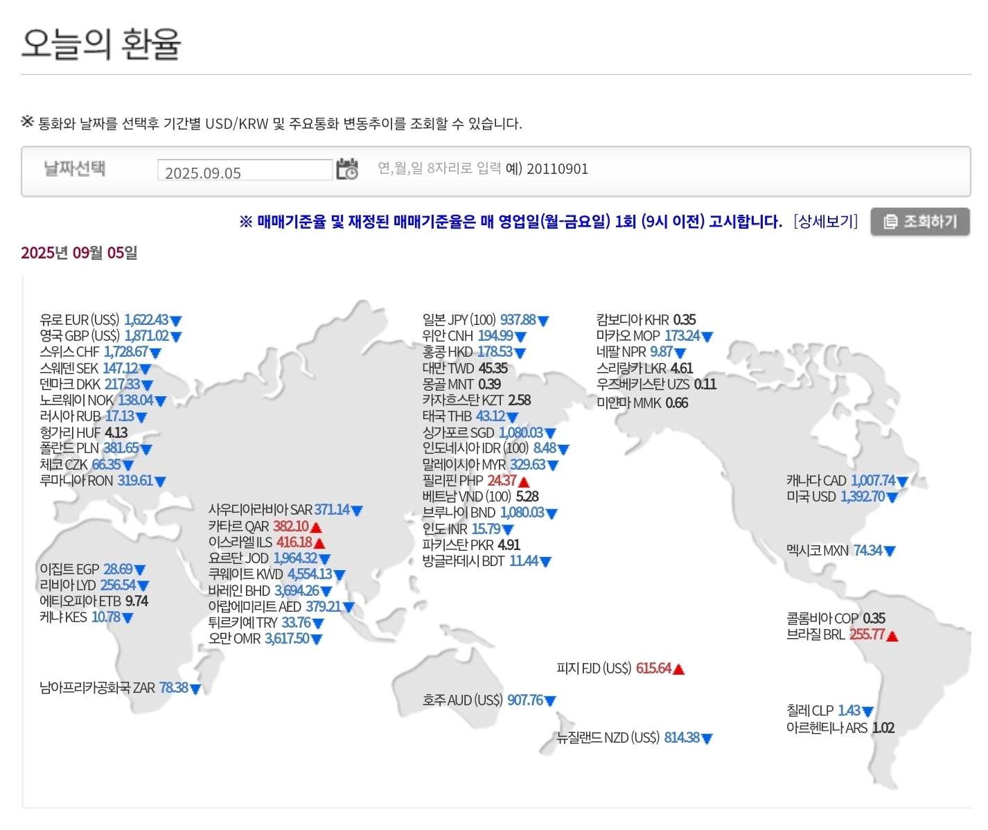 | 2025년 9월 4일 환율 및 매매기준율 (0) | 2025.09.04 |