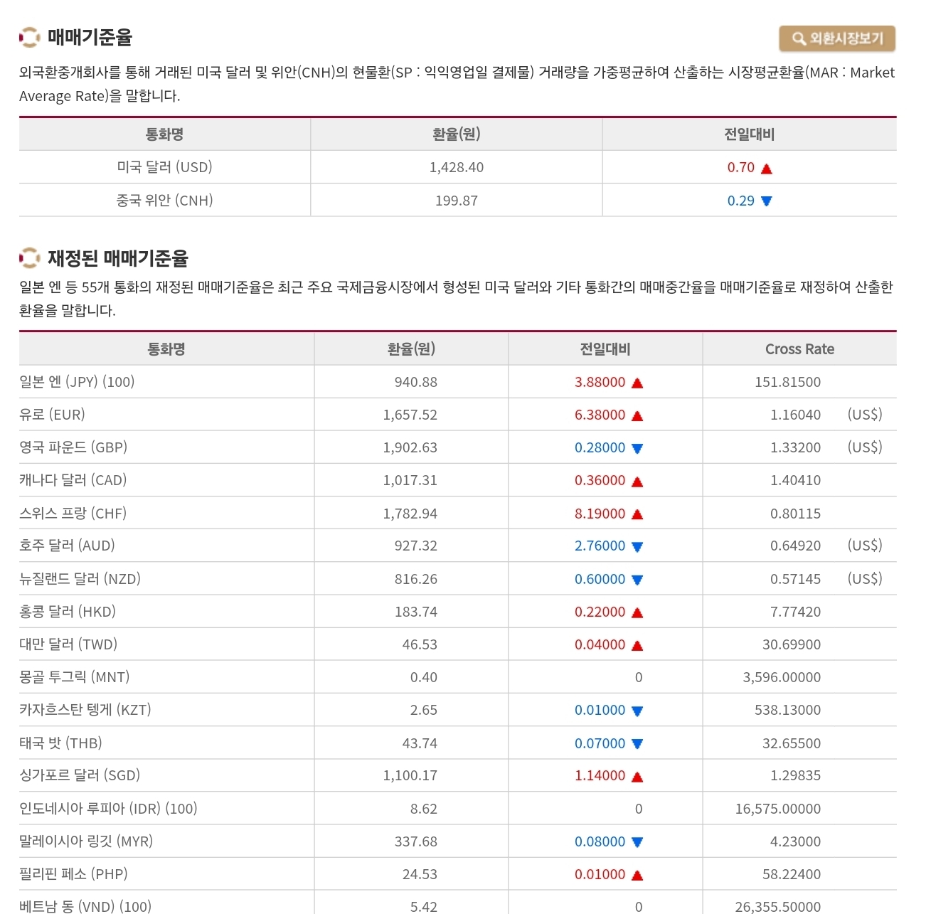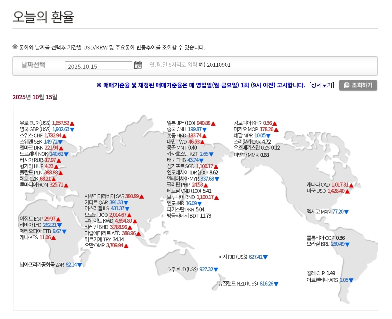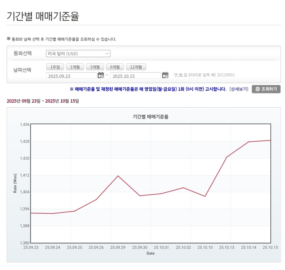 | 2025년 10월 14일 환율 및 매매기준율 (0) | 2025.10.14 |