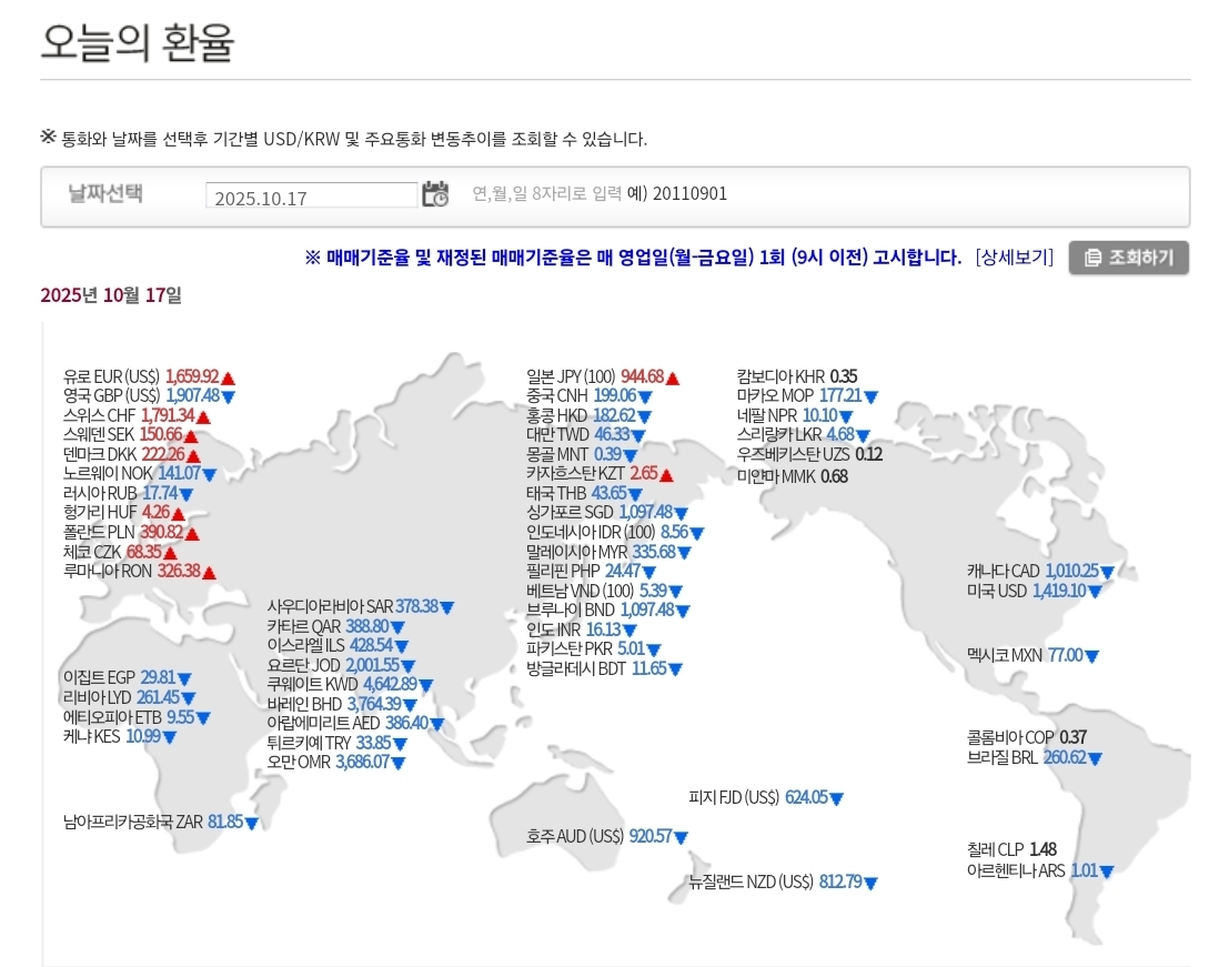 2025년 10월 14일 환율 및 매매기준율 (0) | 2025.10.14 |