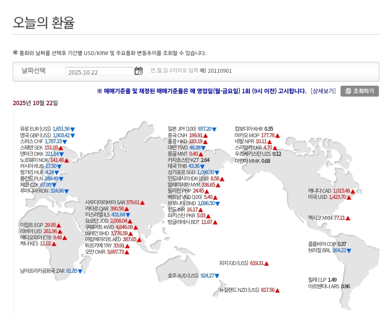 2025년 10월 22일 환율 및 매매기준율 본문
