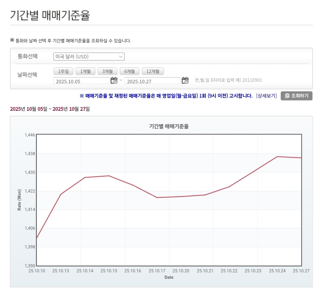 | 2025년 10월 24일 원·달러 환율 및 매매기준율 분석 (0) | 2025.10.24 |