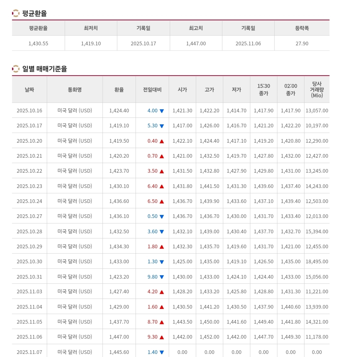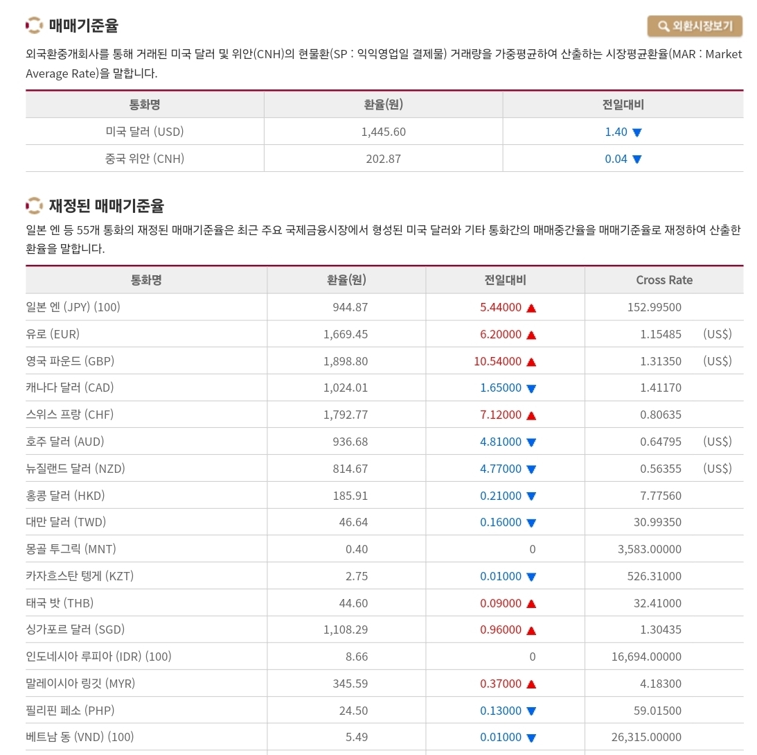 | 📈 2025년 11월 4일 환율 및 매매기준율 — 외국인 ‘2조 순매도’ 충격에 원/달러 환율 1,440원 돌파 (0) | 2025.11.04 |