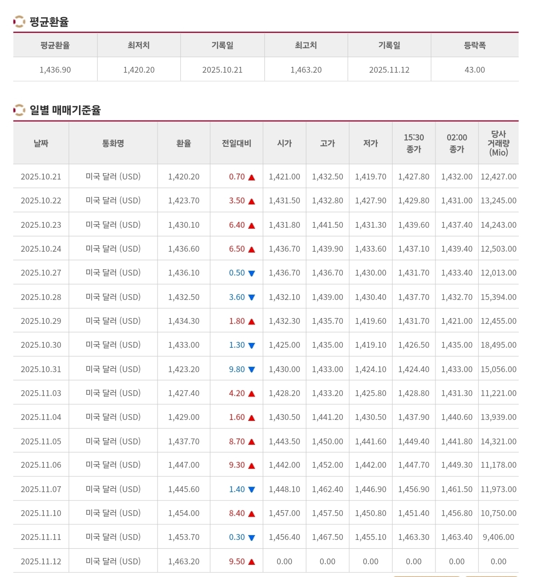 | 2025년 11월 13일 환율 및 매매기준율, 📈 1,475원 돌파 — 7개월 만의 최고치 경신 (0) | 2025.11.13 |