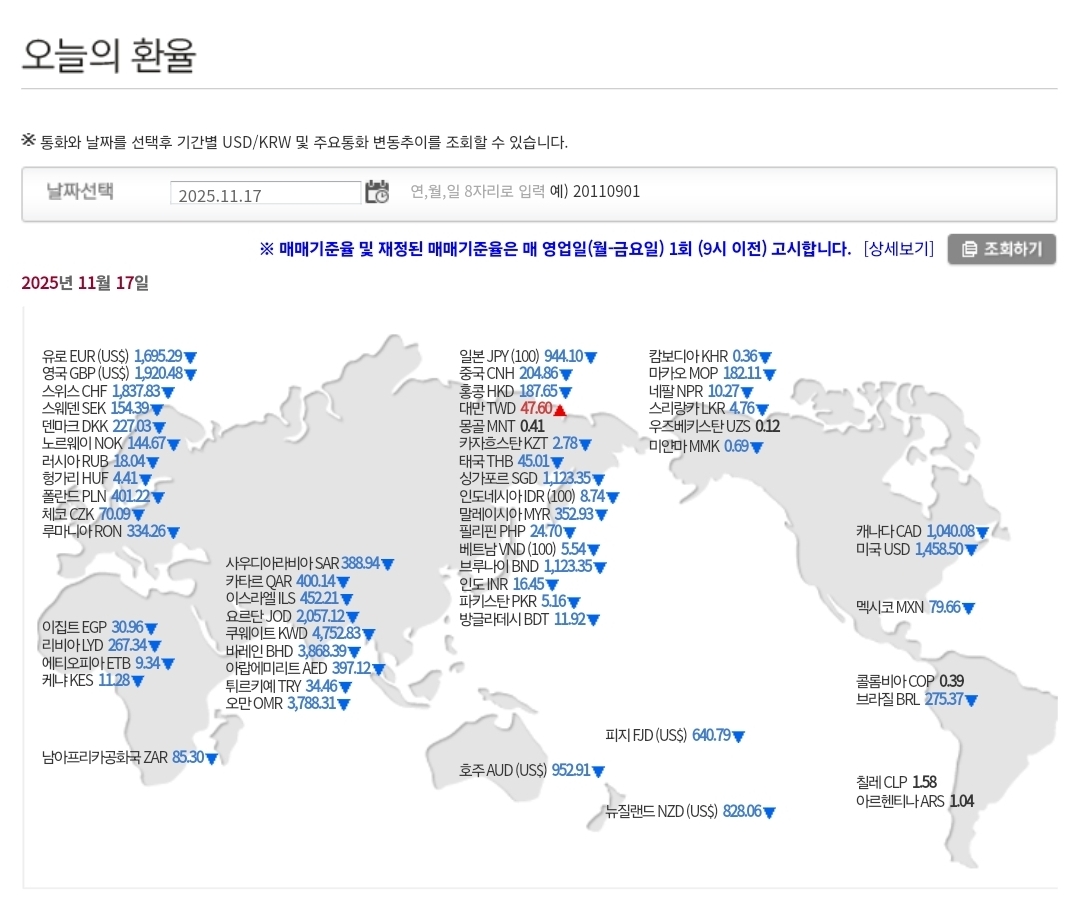 | 2025년 11월 18일 환율 및 매매기준율 (1) | 2025.11.18 |