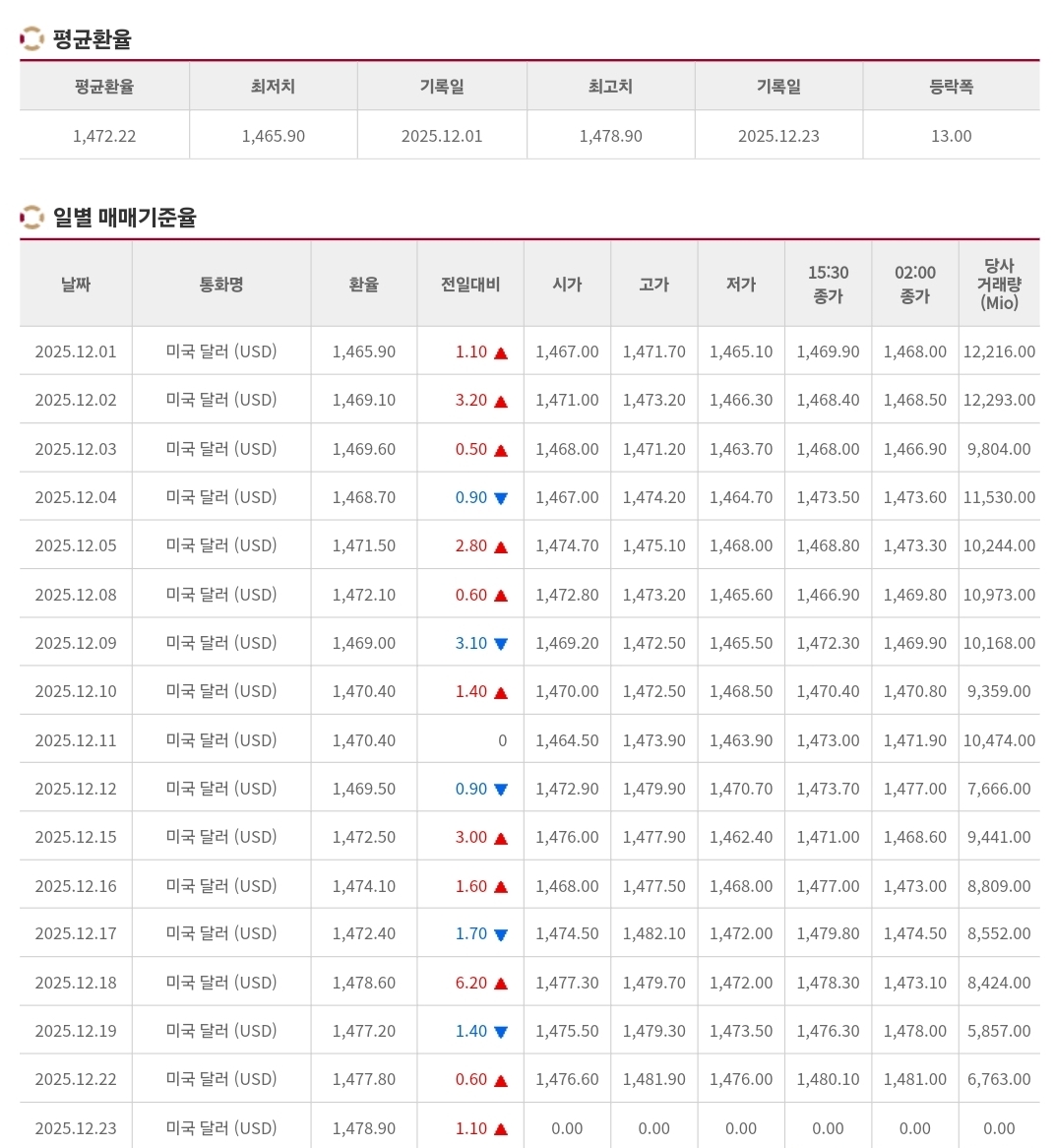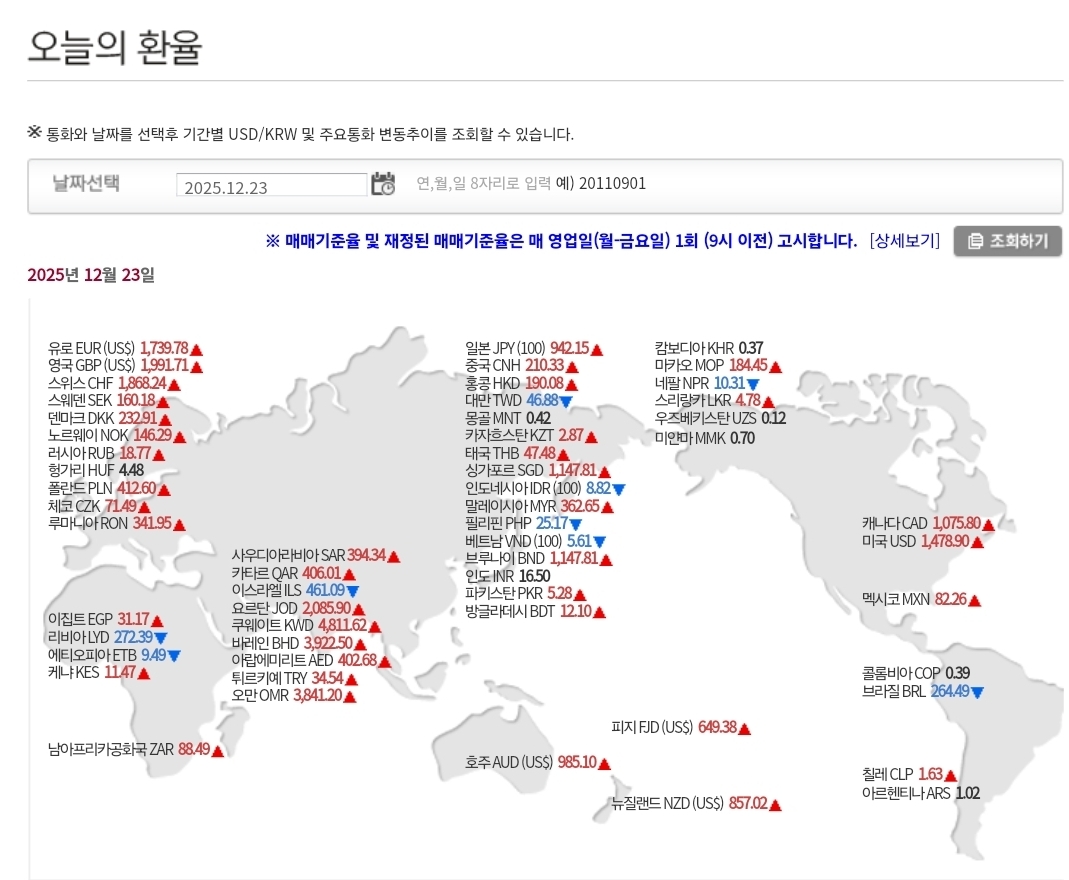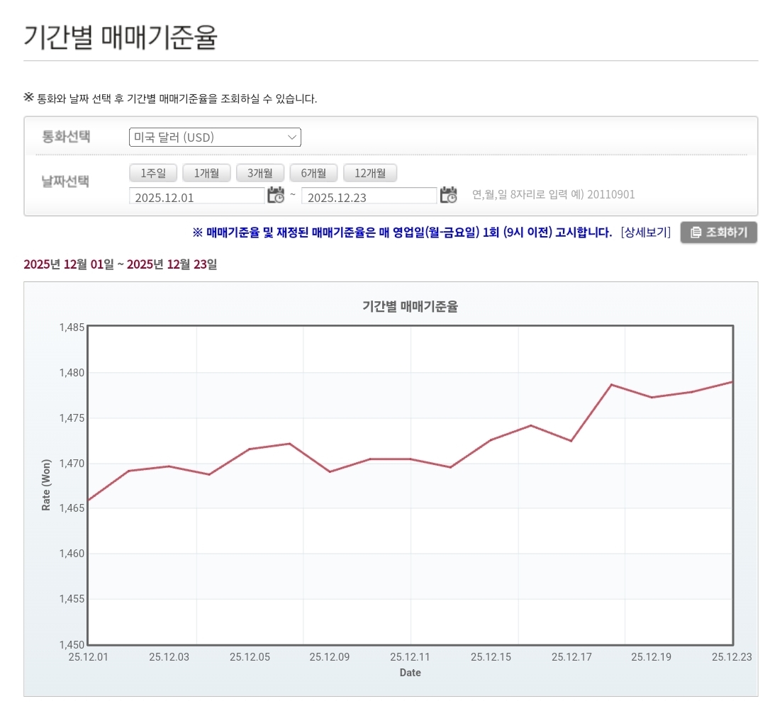 2025년 12월 23일 환율·매매기준율 정리 본문