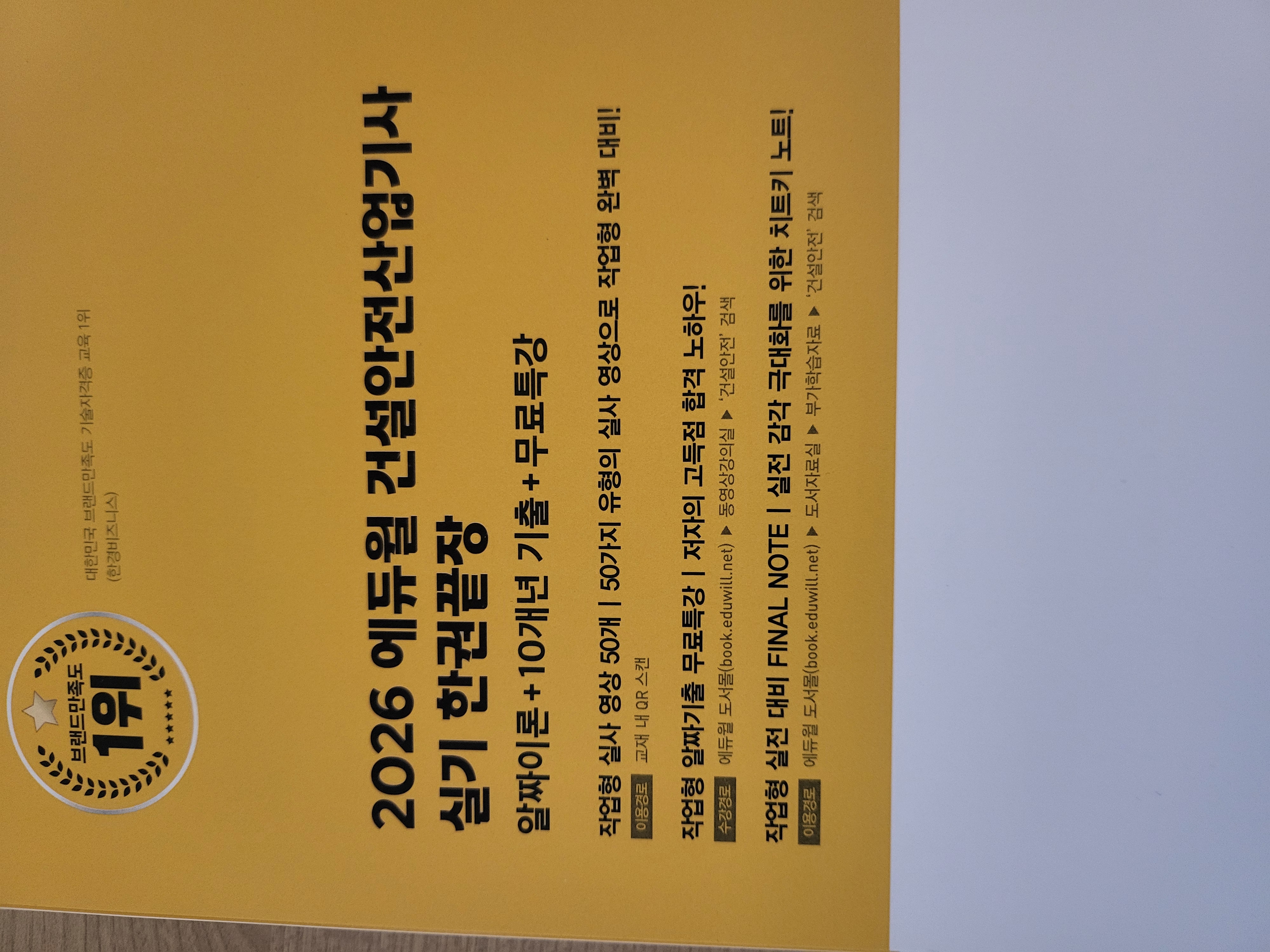 건설 현장의 안전 관리 중요성이 갈수록 커지면서 건설안전산업기사 자격증에 대한 관심도 빠르게 높아지고 있습니다. 특히 실무와 직결되는 실기 시험은 단순 암기가 아닌, 출제 포인트를 정확히 짚는 전략적인 학습이 중요합니다. 이런 흐름 속에서 수험생들 사이에서 입소문을 타고 있는 교재가 바로 2026에듀윌 건설안전산업기사 실기 한권끝장입니다.