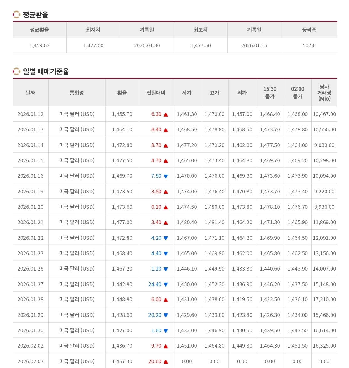 | 2026년 2월 2일 환율·매매기준율 분석 (1) | 2026.02.02 |