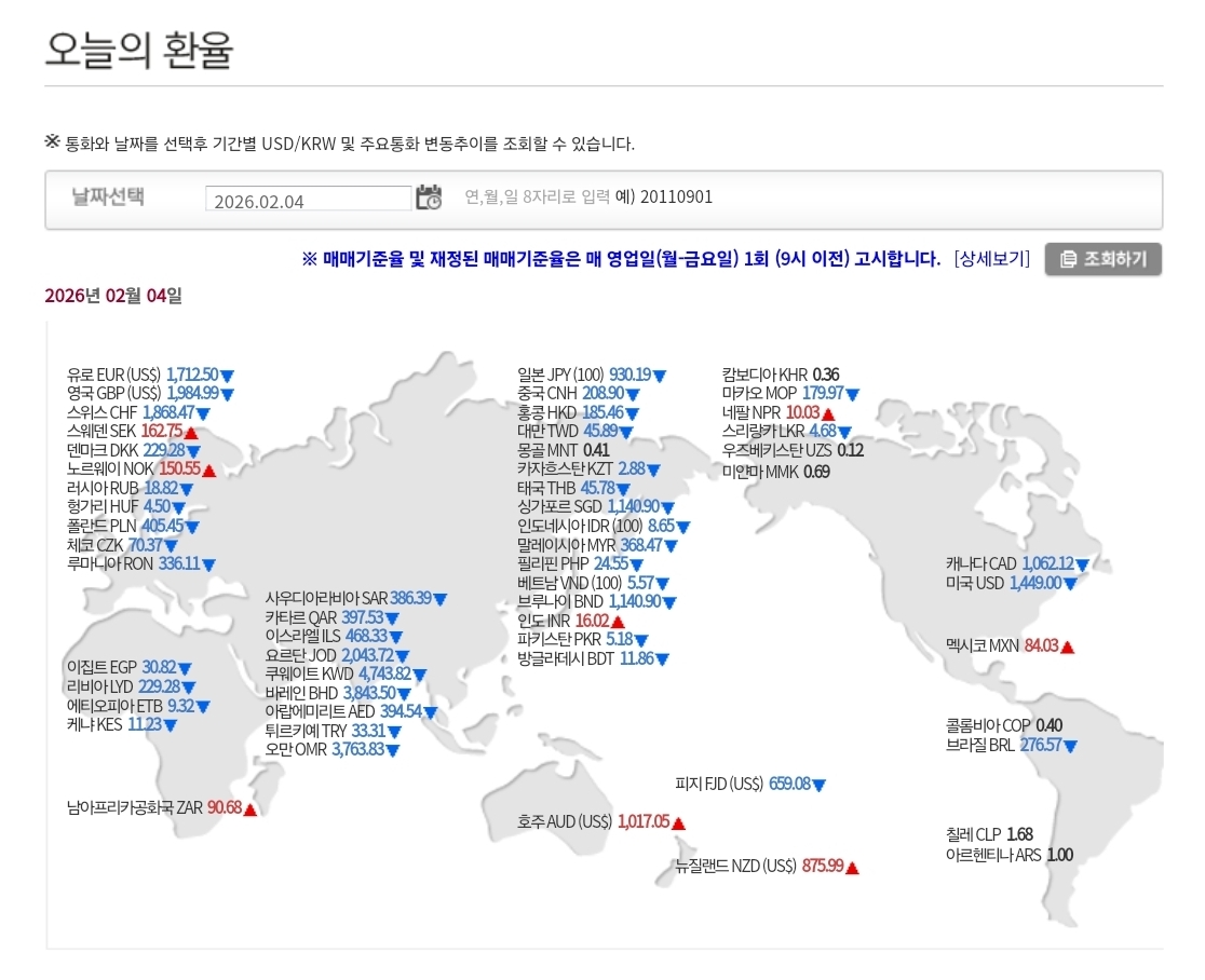 2026년 2월 4일 환율·매매기준율 분석 본문