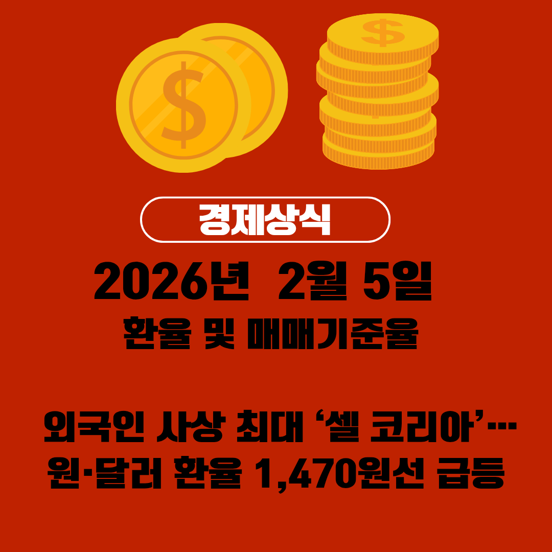#2026년환율 #2월5일환율 #원달러환율 #매매기준율 #환율급등 #1470원환율 #외국인순매도 #셀코리아 #환율뉴스 #오늘의환율 #외환시장 #환율전망 #원화약세 #달러강세 #달러인덱스 #엔화약세 #원엔환율 #엔달러환율 #코스피폭락 #코스닥하락 #외국인매도 #개인순매수 #주식시장 #금융시장 #경제뉴스 #한국경제 #글로벌금융 #환율변동성 #환테크 #달러투자 #외환시장분석 #환율흐름 #강달러정책 #미국재무부 #일본총선 #엔저정책 #환율리스크 #매매기준율정보 #환율공부 #외환시장동향