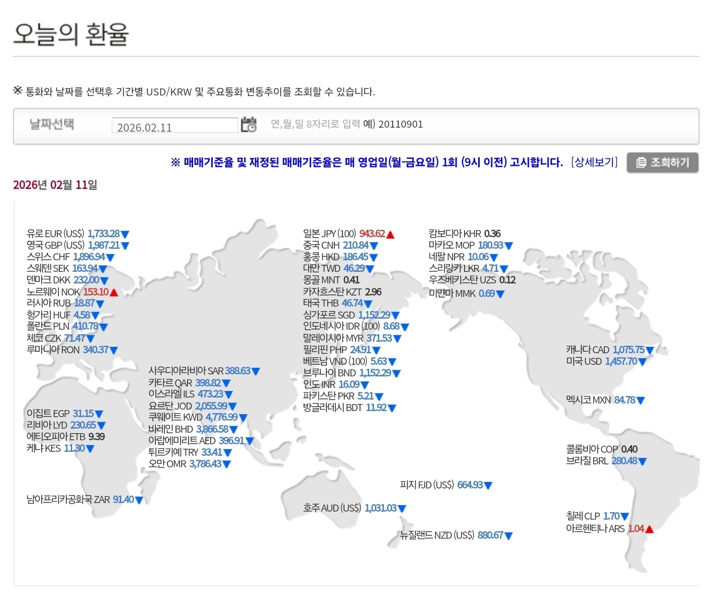 2026년 2월 11일 환율·매매기준율 핵심 정리