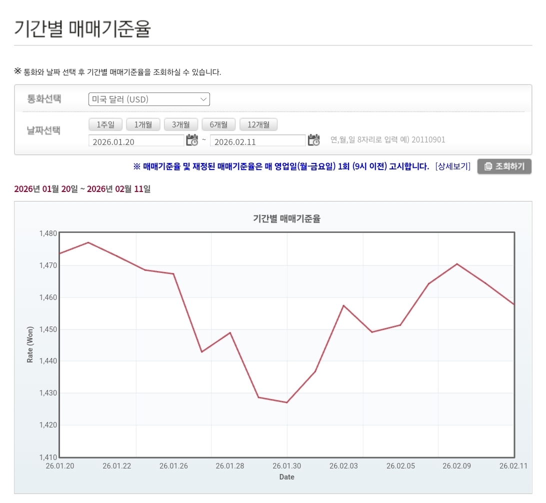 | 2026년 2월 12일 환율·매매기준율 분석 (1) | 2026.02.12 |