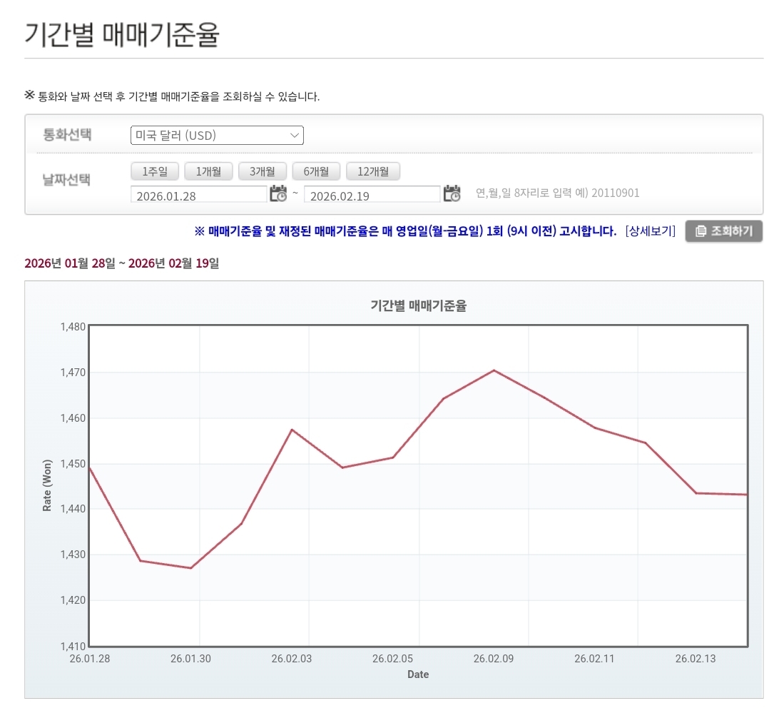 2026년 2월 19일 환율·매매기준율 분석 본문