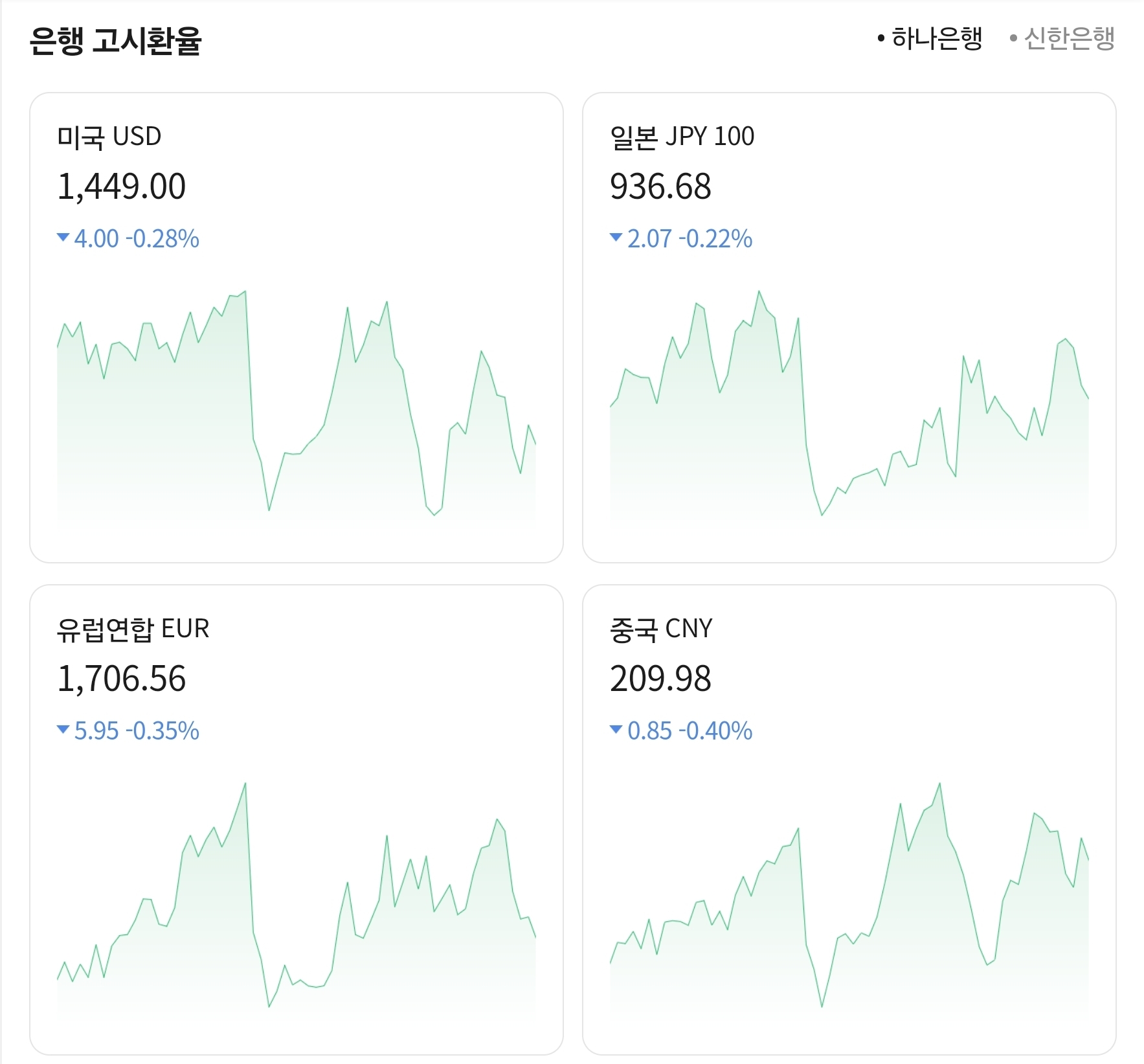 현재 환율은 1,440~1,460원 박스권에서 등락하는 흐름입니다.
