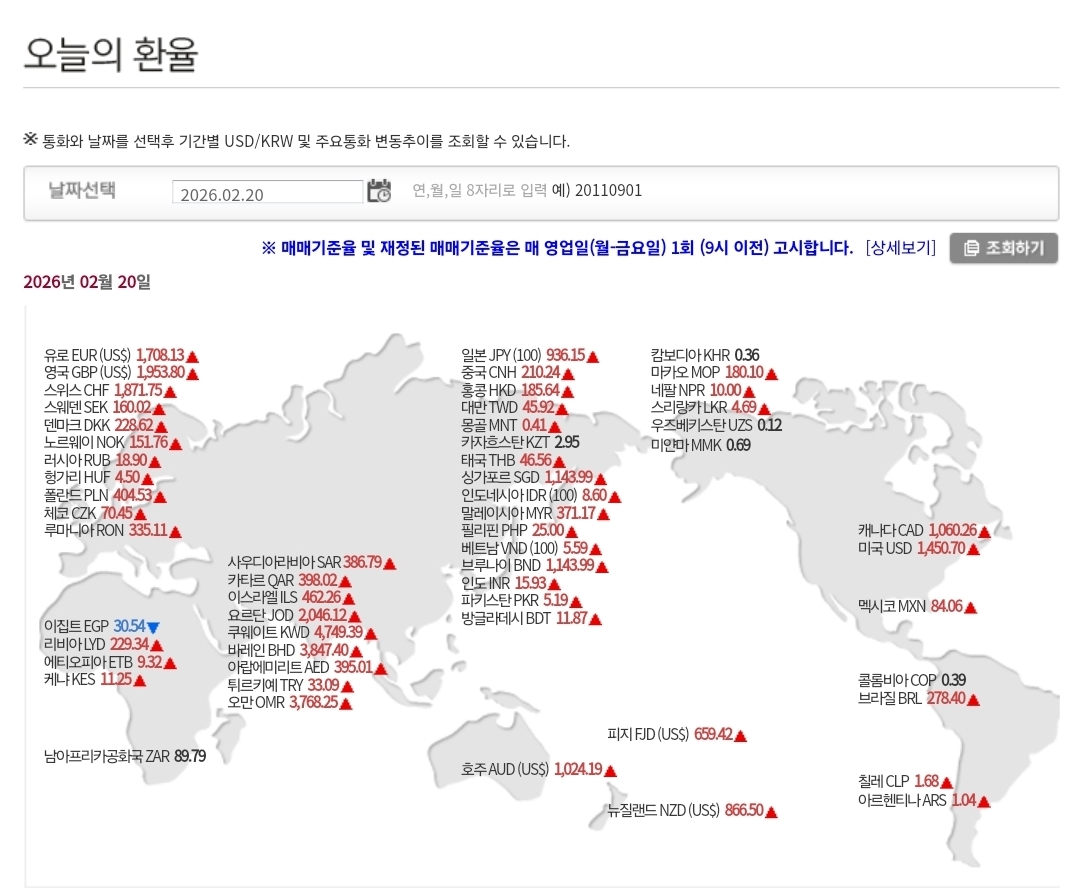2026년 2월 20일 환율·매매기준율 분석 본문