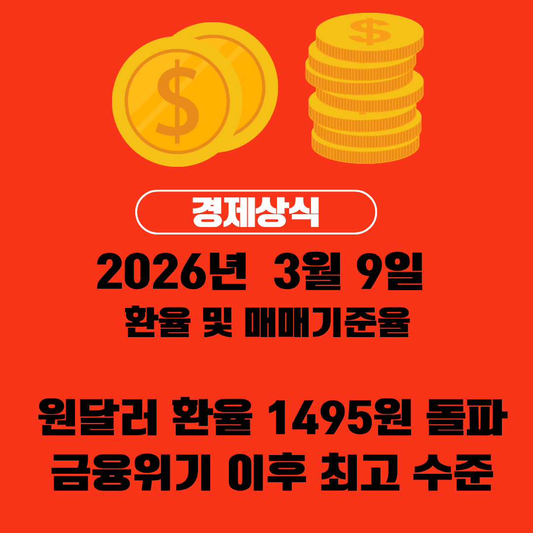이번 글에서는 2026년 3월 9일 환율 흐름과 매매기준율, 환율 상승 원인, 국내 금융시장 영향, 향후 전망까지 자세히 정리해 보겠습니다.