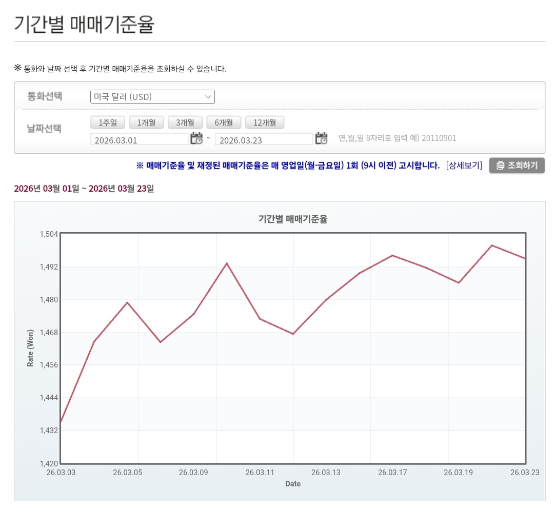 이번 글에서는 2026년 3월 23일 환율 흐름, 매매기준율, 국제유가 영향, 달러 인덱스, 외국인 자금 흐름, 엔화 동향, 향후 환율 전망까지 상세히 정리해 드립니다.
