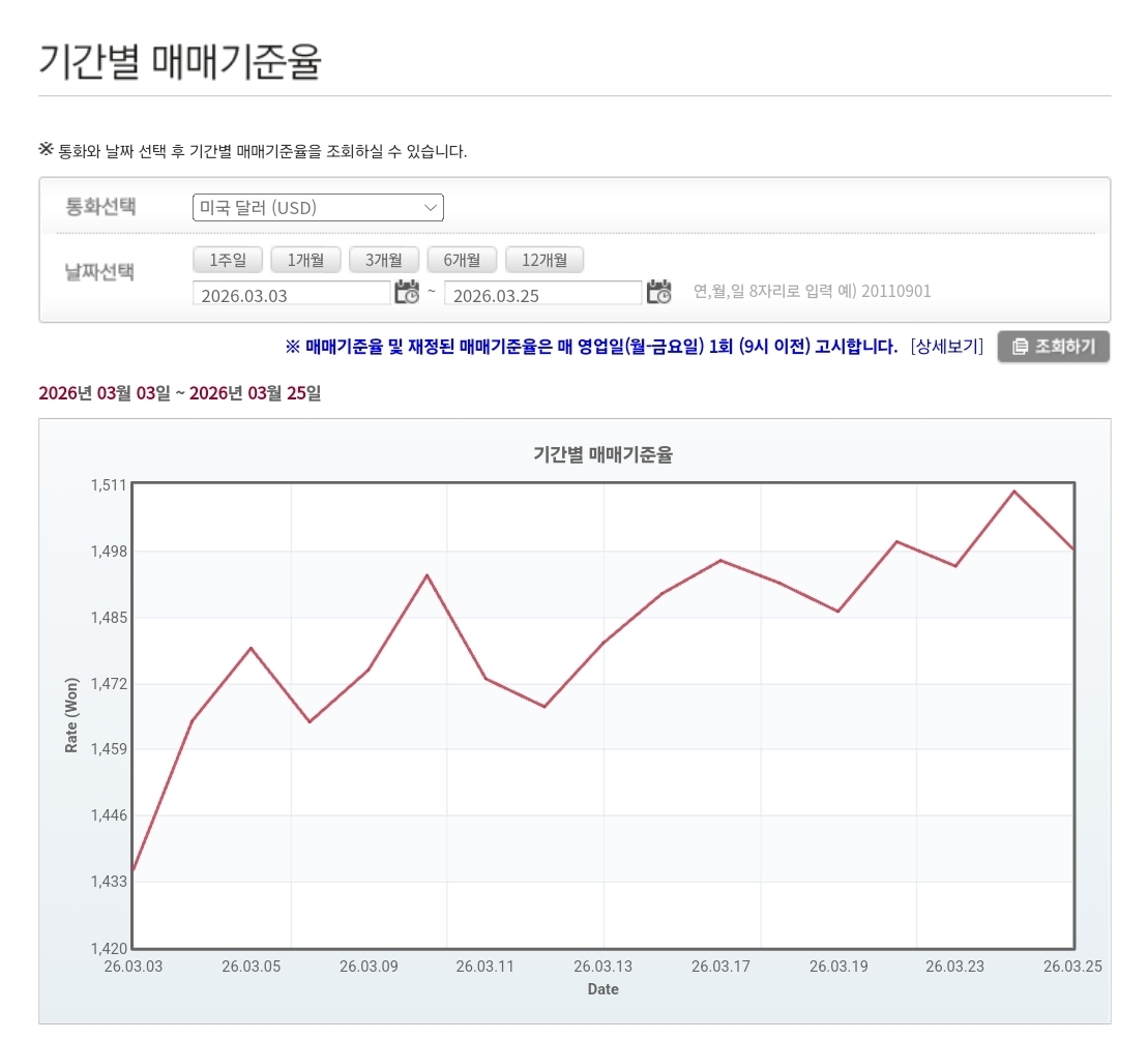 2026년 3월 25일 원달러 환율은