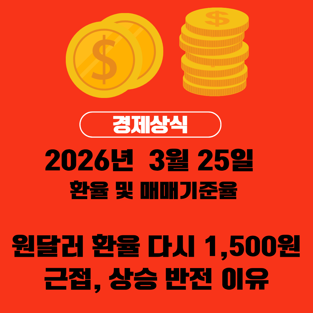 2026년 3월 25일 국내 외환시장은 다시 한번 긴장감이 높아지는 모습을 보였습니다. 전날 큰 폭으로 하락하며 1,500원 아래로 내려왔던 원/달러 환율이 하루 만에 다시 상승하며 1,500원선에 바짝 근접했기 때문입니다.