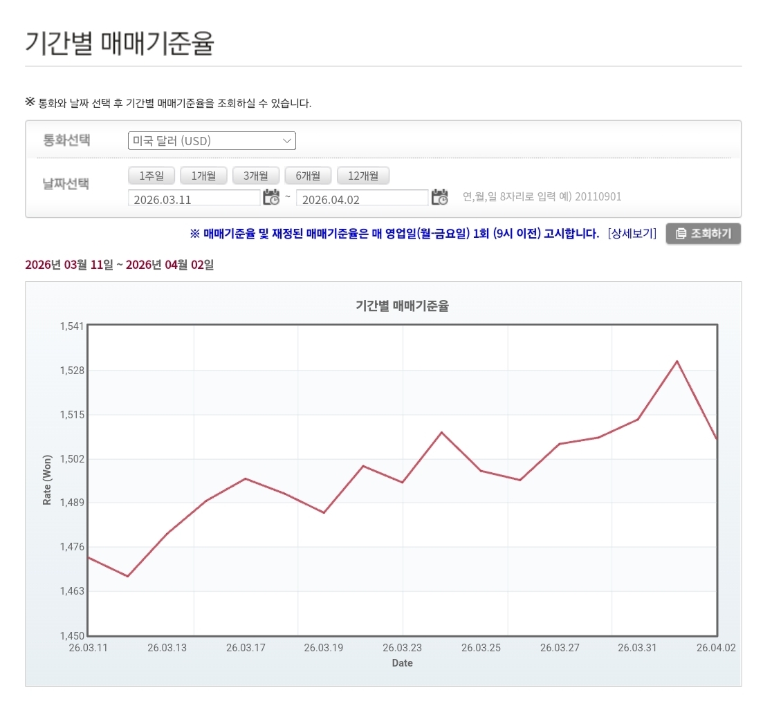 2026년 4월 2일 원·달러 환율이 다시 한번 큰 폭으로 상승하며 금융시장에 긴장감이 고조되고 있습니다. 특히 최근 중동 정세 불안과 함께 미국의 강경한 외교 정책이 맞물리면서 환율 변동성이 크게 확대되고 있는 상황입니다. 이번 글에서는 2026년 4월 2일 환율 흐름과 매매기준율, 그리고 향후 전망까지 상세하게 분석해 보겠습니다.