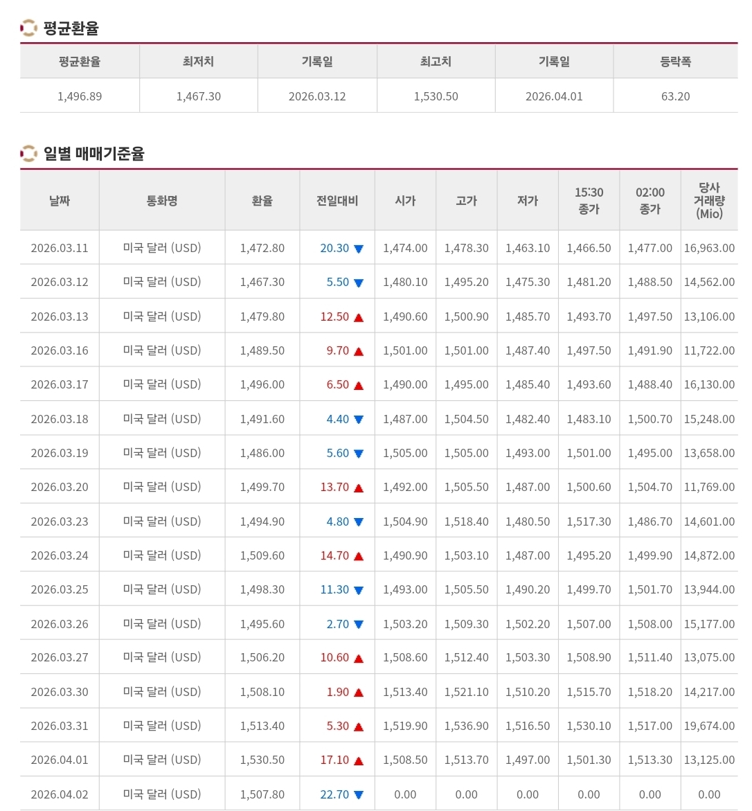 2026년 4월 2일 환율: 1519.7원 (급등)
